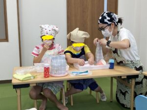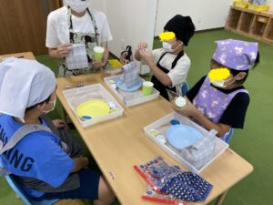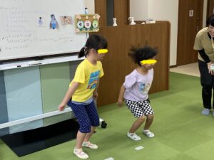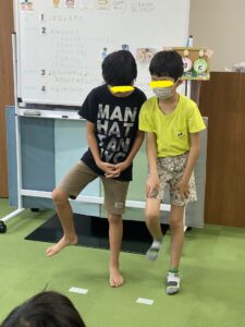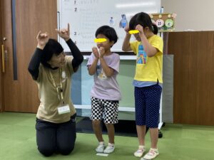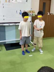 今回初めて行いました。 ジェスチャーゲーム。 お題にそって無言で体を使って表現します。